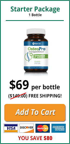 "I was diagnosed with osteoporosis and the doctor wanted me on a drug. I decided to try Osteo Pro instead. After 6 months of taking it, my bone density test showed that I had improved! I am looking forward to my next bone density test to see if I have improved even more. I will continue to take Osteo Pro, I am a believer!"